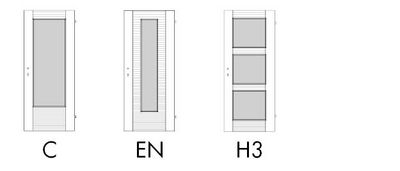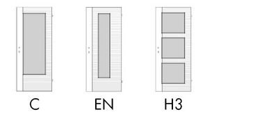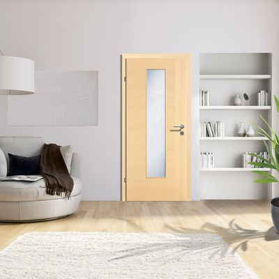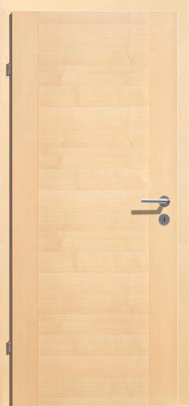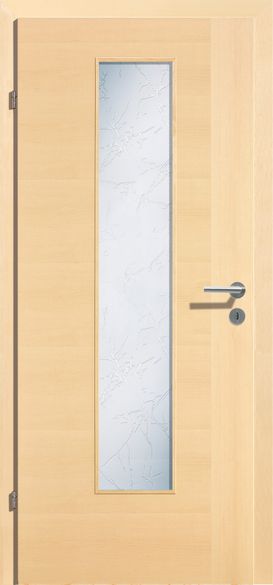 Hauptfläche Ahorn querfurniert, Kombination mit Ahorn-Längsfurnier; Verglasung: Uadi Weiß; Glaslichte EN